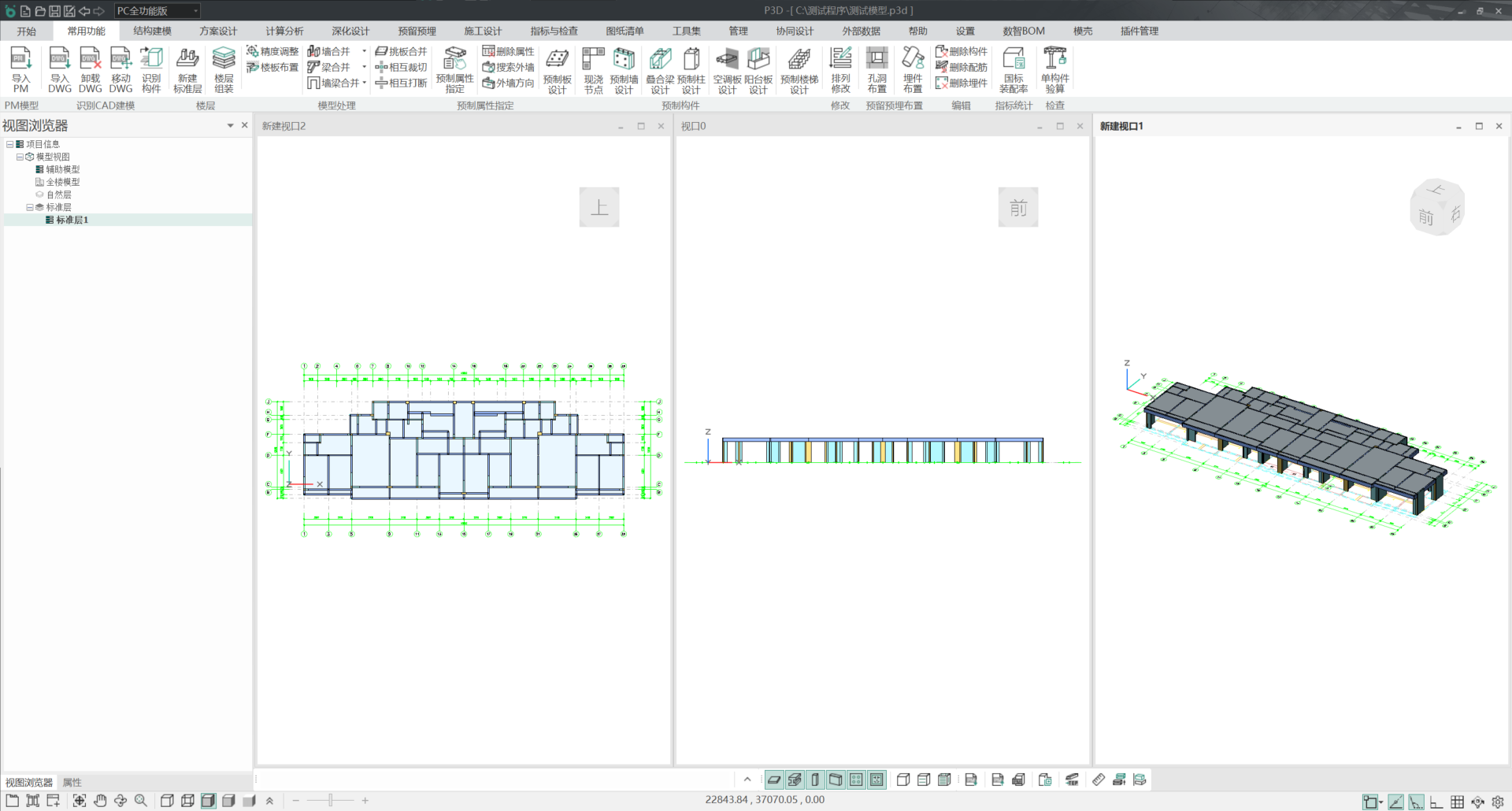 如下图所示,界面最下方是状态栏,从左到右分别为鼠标当前位置的三维坐标,捕捉状态控制及捕捉设置工具;再右侧是视窗控制,可快速切换为单窗口、两窗口和三窗口,将多窗口平铺放置,将所有视窗充满显示。在多窗口显示时,我们可以将单个视窗拖出视口并调整视窗大小,如下图所示,双击视窗窗口顶部即可使视窗最大化。最后是环境光照强度调节按钮,通过拖拽滑动条可调节亮度。