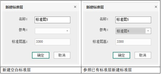用户可通过【新建标准层】增加标准层,目前软件提供两种创建方式:直接创建空白标准层,如下图左,或参照已有标准层完成标准层创建如下图右。