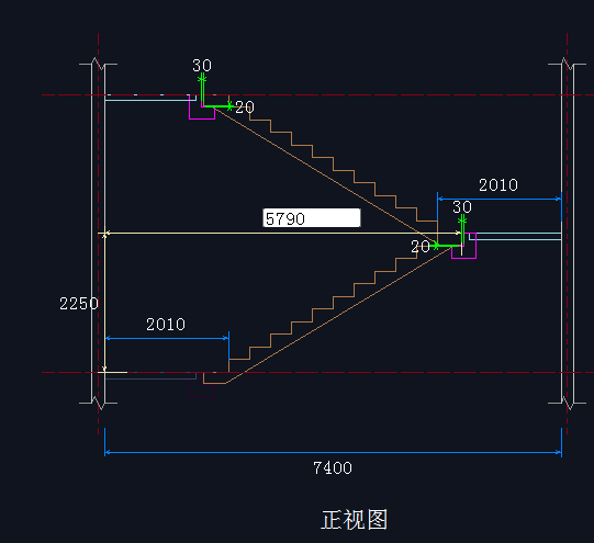 楼梯正视图、俯视图修改区域: