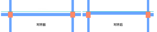 【通用对齐】功能:可以实现在某一楼层中,梁、墙、柱构件沿某个选中边界的对齐。图展示了对齐前和对齐后的效果。
