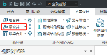 注意,被柱打断的多段梁不合并,若需要合并请参考“强制合并(梁)”命令。