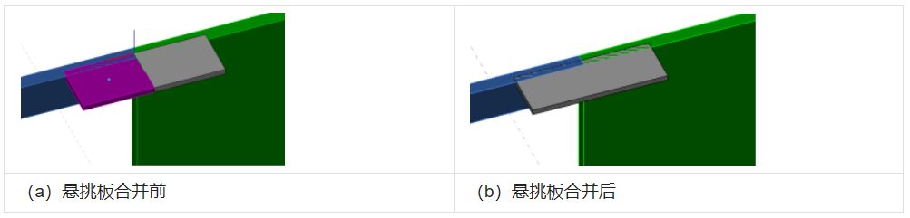 悬挑板合并可将厚度和悬挑长度均相同且完全相接的悬挑板合并为一个构件,如图 所示。