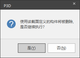 点击“删除”,可删除当前在下侧列表中选中的隔墙截面。如果已经用此截面在模型中绘制了隔墙,则会弹出如下提示,点击“是(Y)”,删除此截面及模型中已经创建的隔墙。