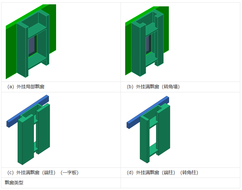 外挂满飘窗(转角墙):单窗洞、双窗洞