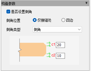 预制板是否设置倒角的总控开关,勾选时下面的倒角参数才可用。 - 倒角位置