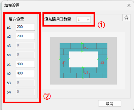 区域①设置需要布置的填充墙内洞口数量。