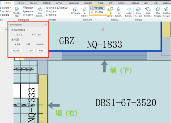 选择生成规则和范围后,点击【生成】进行安装方向的布置。