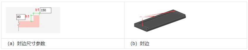 封边开放了上部封边尺寸【b1】和【h1】,分别控制上封边的宽度和高度。