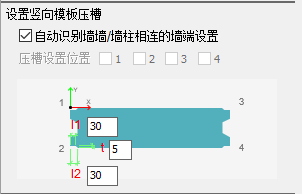 【自动识别】选否时,压槽设置位置亮显,可勾选设置位置【1】、【2】、【3】、【4】布置竖向模板压槽。