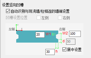 【自动识别】选是时,程序自动识别与现浇墙/柱相连的墙端,布置竖向凹槽;