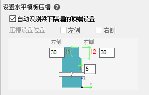 【自动识别】选否时,压槽设置位置亮显,可勾选设置位置可勾选设置【左侧】、【右侧】布置水平模板压槽。