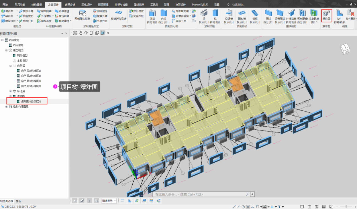 用户可以使用爆炸图功能,生成对应自然层的爆炸图模型,生成的爆炸图模型会在项目树-爆炸图中显示,每一自然层仅能生成一个对应的爆炸图吗,如图所示。