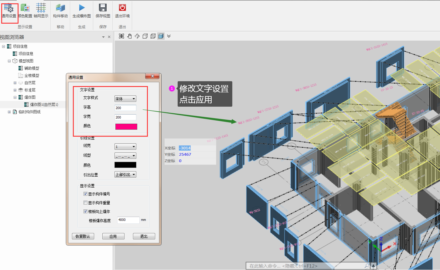 • 显示构件编号、显示构件重量