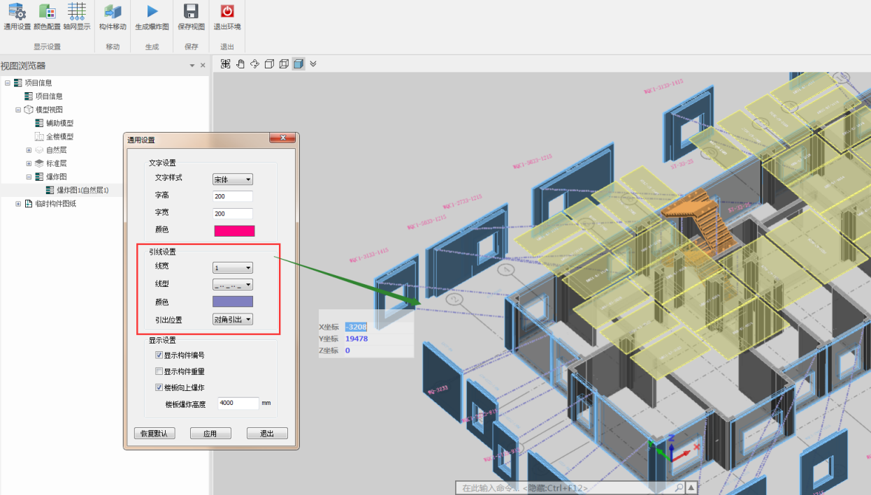 可以设置构件引线的线宽、线型和颜色;