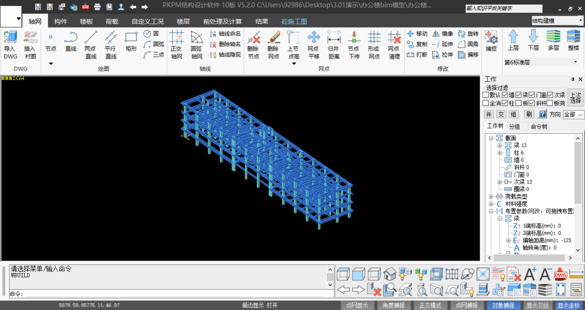 【导出完成后打开pkpm】:勾选该功能,导出完成后自动跳转pkpm模块,跳转之后界面如图所示,若关闭pkpm模块,软件视图自动转回pkpm-bim菜单视口。