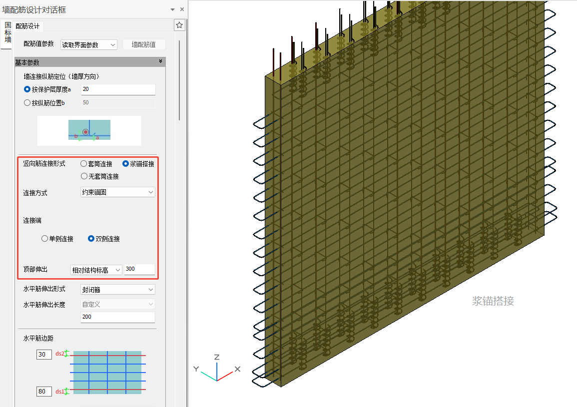 注:竖向分布钢筋伸出长度由此参数控制;竖向连接钢筋伸出长度=灌浆端钢筋插入长度+墙上下侧接缝长度 - 水平筋伸出