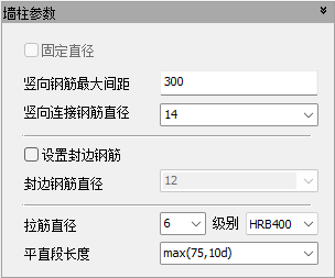 【竖向钢筋最大间距】:可以输入竖向钢筋的最大间距,暗柱范围内的纵筋排布不会超过此值。