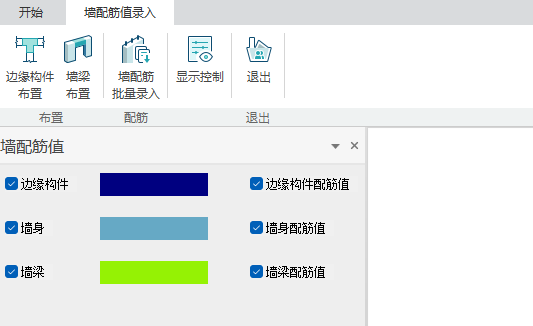【读取配筋值】:支持对剪力墙边缘构件、墙梁、墙身配筋信息进行批量输入。预制剪力墙读取配筋信息进行三维钢筋的转化生成。点击【墙配筋值】进入【墙配筋值录入】界面。