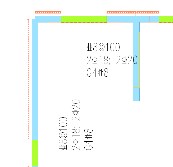 可在显示控制中调整墙梁颜色与配筋值的显隐,生成墙梁效果图如下。