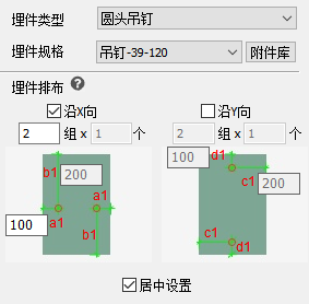 【居中布置】:当选择居中布置时,同方向上布置的埋件沿X\Y居中布置;