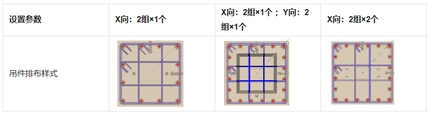 下表展示了常见柱吊件排布形式,与X/Y向参数设置: