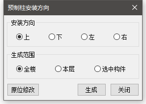 【生成】:按照设置的【安装方向】,为【生成范围】内的所有预制柱生成标识。