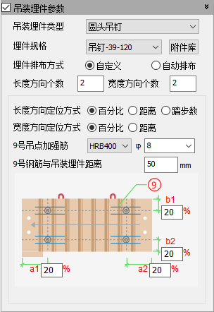 吊点加强筋(9号钢筋)与吊装埋件距离,可以通过手动输入的方式设置距离数值。