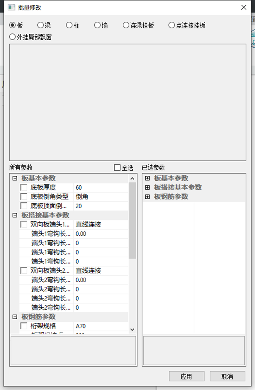 批量修改工具支持界面所示几类构件的参数调整。