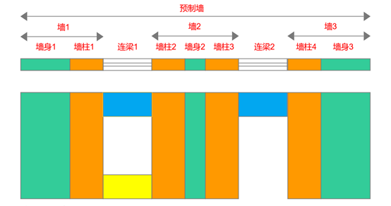 【墙】:以一个预制墙中的洞口连梁作为分界,每一个区域为一个墙配筋区域,主要控制该区域内水平筋的钢筋属性参数。