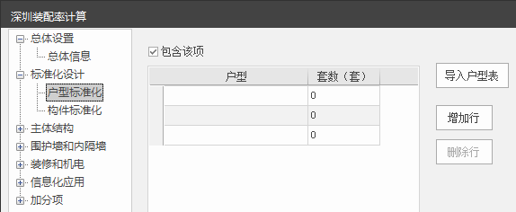 【户型标准化】:根据项目情况输入户型的名称和套数,程序根据要求进行分值判断;也可点击“导入户型表”,直接导入已有户型表。