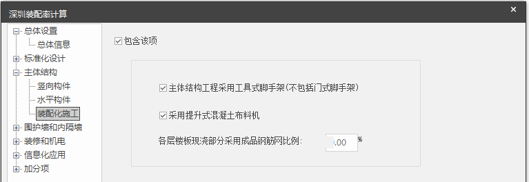 【竖向构件】:增设两个选项,其余部分操作同国标装配率,界面如下图所示: