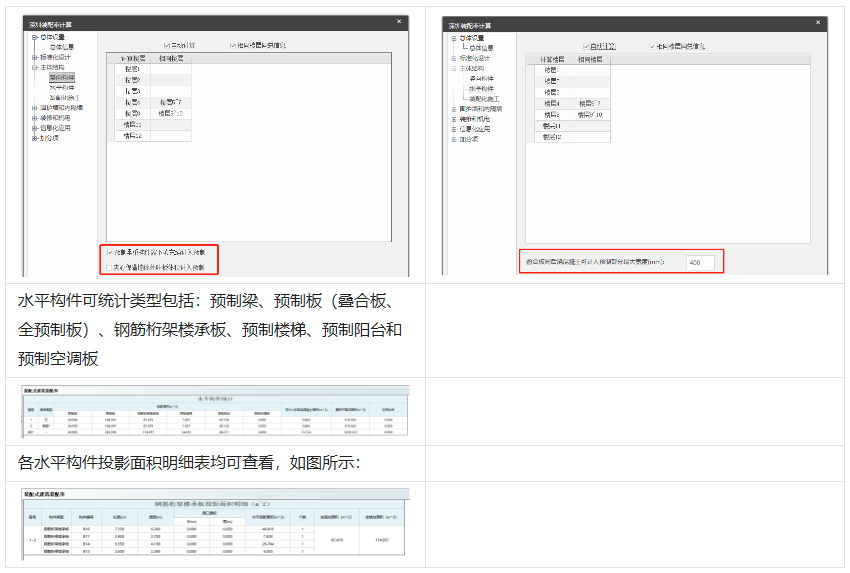 【水平构件】:根据深标要求,叠合板间后浇混凝土可计入预制部分的最大宽度为400mm,可手动输入调整。