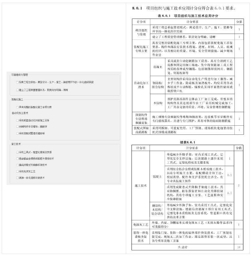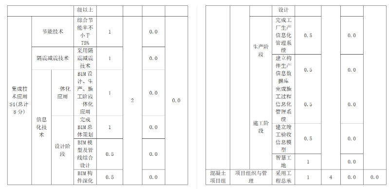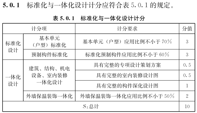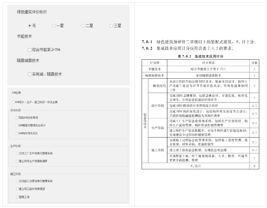 此外根据项目实施情况,选择建筑、结构、机电设备及室内装修一体化设计的选项,计分标准参照《江苏省标》规定: