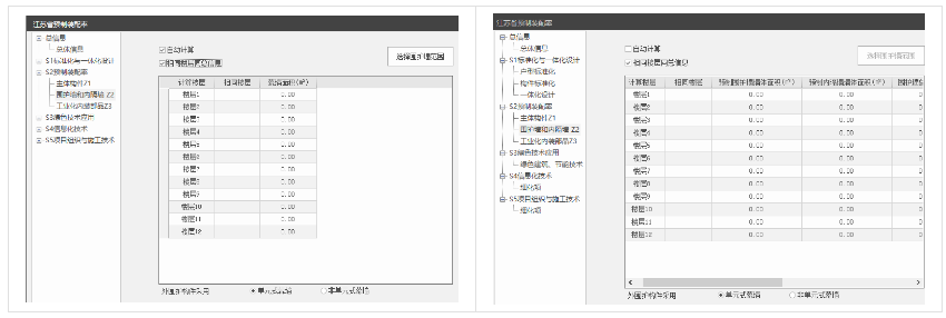 用户根据项目实际情况选择对应工艺做法,根据《江苏省标》各项评分要求,得出最终结果。点击“计算”,直接输出各项结果,可查看和导出为EXCEL文件,功能启动界面如下: