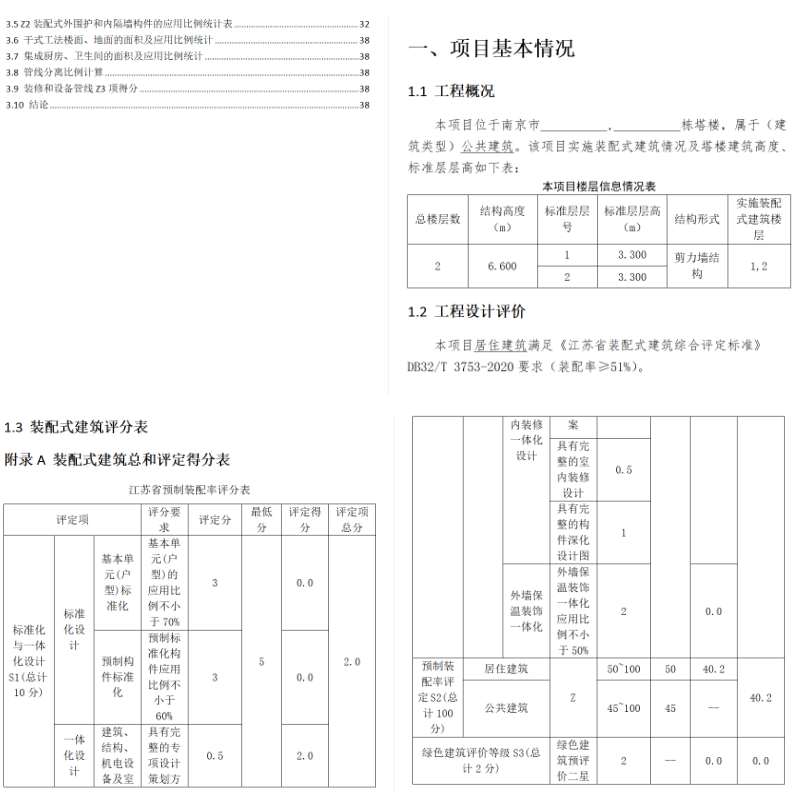 ‘项目基本情况’-工程概况、工程设计评价、装配式建筑评分表(附各层预制构件示意图);