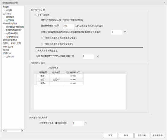 默认勾选自动计算,若不勾选自动计算,则可手动输入水平构件总面积和可扣除面积。