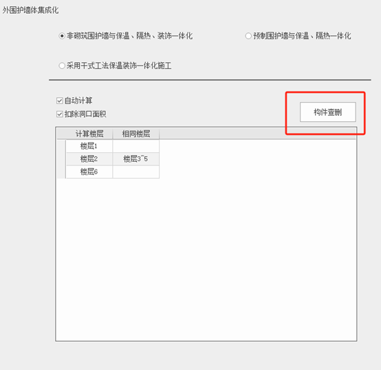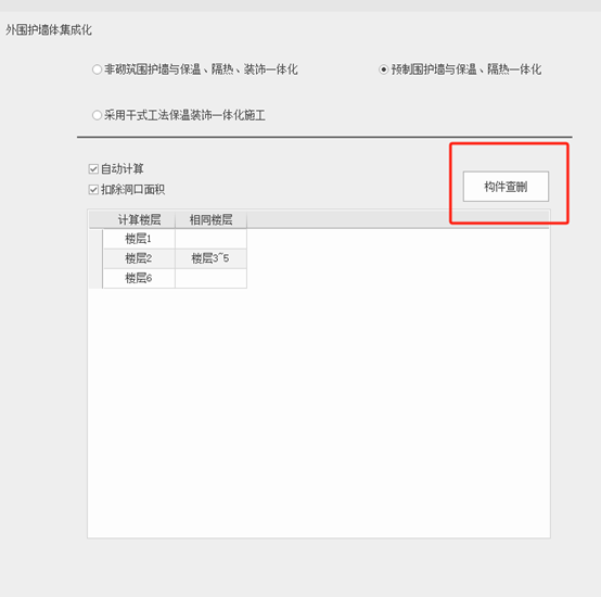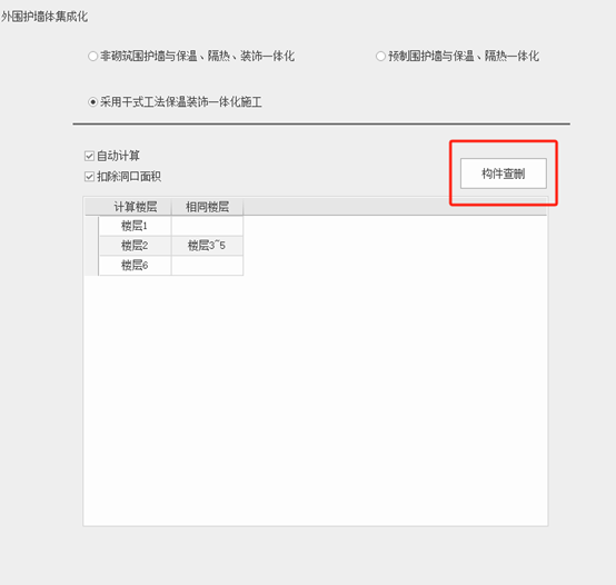 若勾选【采用干式工法保温装饰一体化施工】则可以构件查删,如图所示