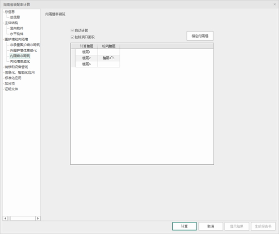 内隔墙非砌筑,提供自动计算和手动输入两种方式,这选择指定内隔墙,点击指定内隔墙命令后界面如下