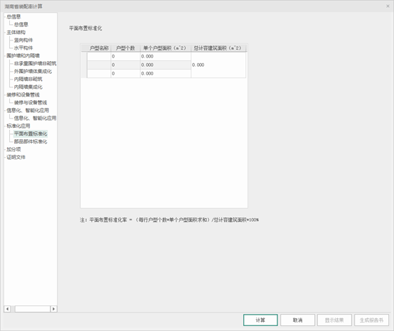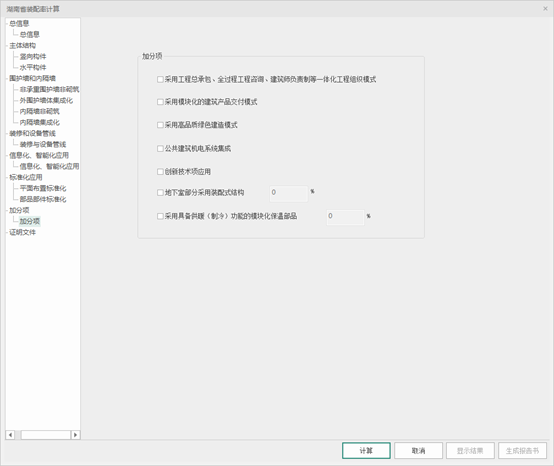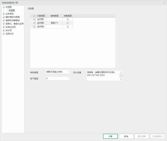 【设计依据】:默认填“湖南省 《装配式建筑评价标准》DBJ 43/T542-2022”可修改,此部分联动在word报告书中同步内容,不影响计算方法。