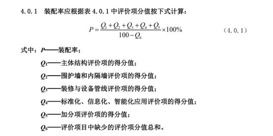 湖南省装配率根据湖南省 《装配式建筑评价标准》DBJ 43/T542-2022相关条文进行统计,以下简称《湖南省标》,规定单体建筑装配率需应不低于50%。计算公式: