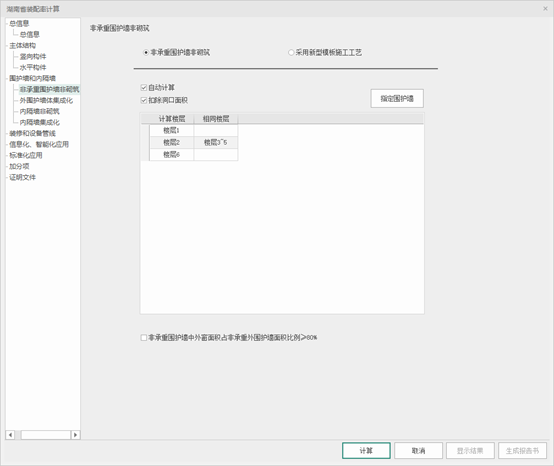 可选择【非承重围护墙非砌筑】或者【采用新型模板施工工艺】,两者都提供自动计算和手动输入两种方式