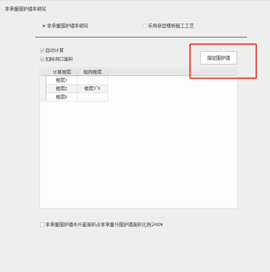 若勾选【非承重围护墙非砌筑】则可以指定围护墙,如下图所示