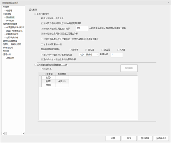 新湖南省装配率的竖向构件可选择【采用预制构件】或选择【采用新型模板或免拆模板施工工艺】