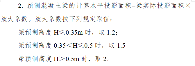 此外,根据《福标》要求计算预制混凝土梁的水平投影面积时,根据梁预制高度进行判断,规则如下: