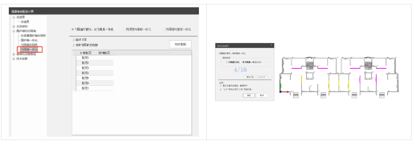 【围护墙一体化】+【内隔墙一体化】:支持手动输入和自动计算两种方式。