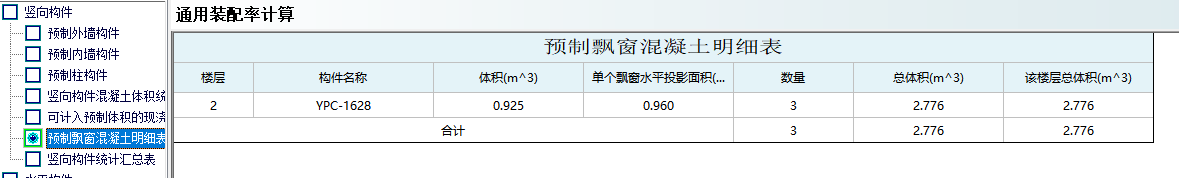 若勾选,则统计预制飘窗的体积,如下图所示: