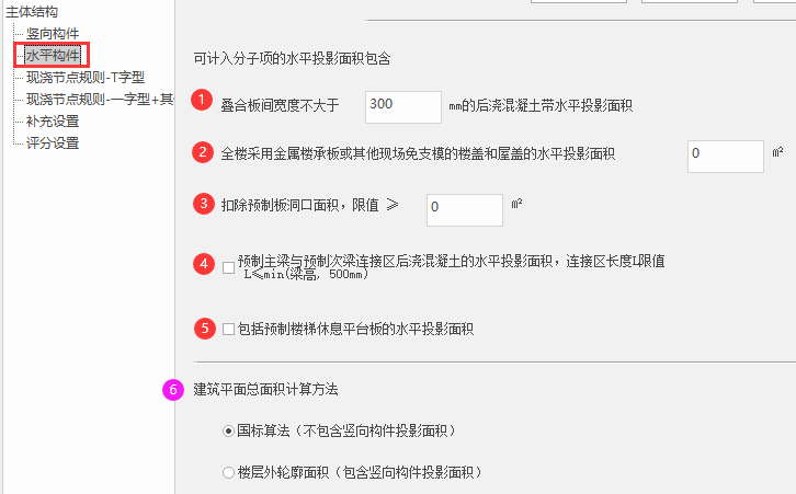 若勾选,则预制楼梯休息平台投影面积计入预制楼梯投影面积中;若不勾选则不计入。建筑平面总面积计算方法