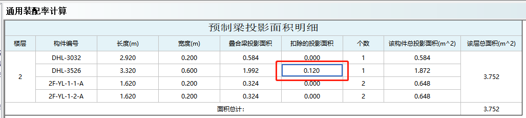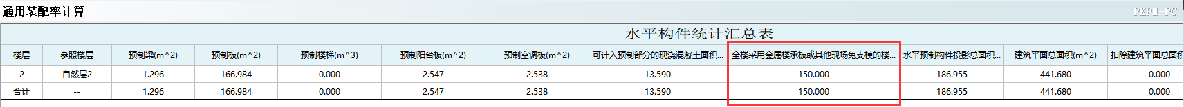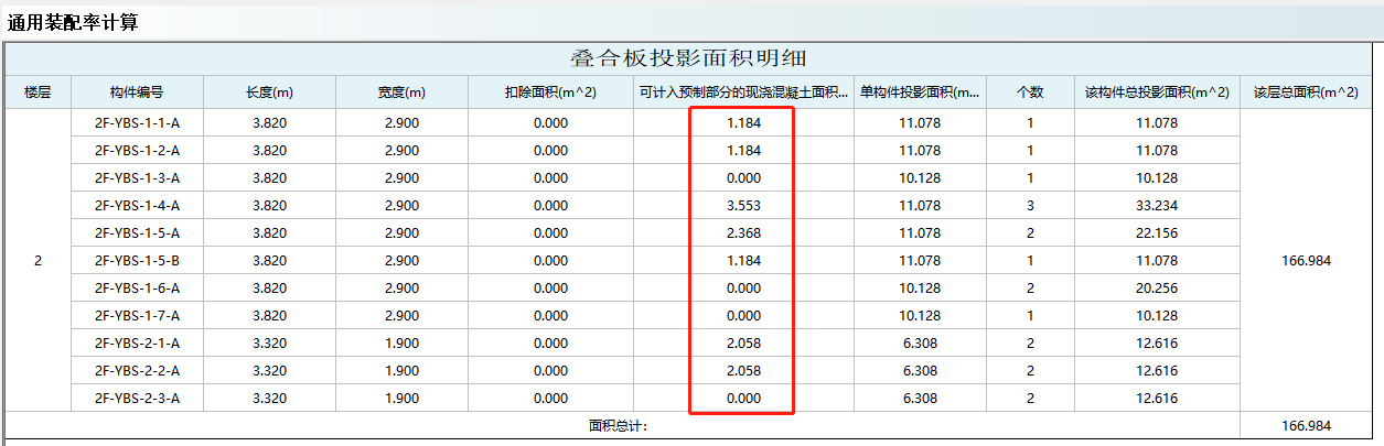 若填写此项,则计入全楼总预制板投影面积中,如下表所示: