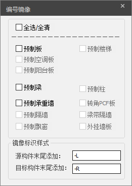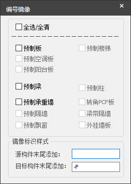 【目标构件末尾添加】:此项可为空,镜像操作后,此处填入的值将被添加至目标构件编号的末尾。多次镜像操作时,该符号将被连续添加。