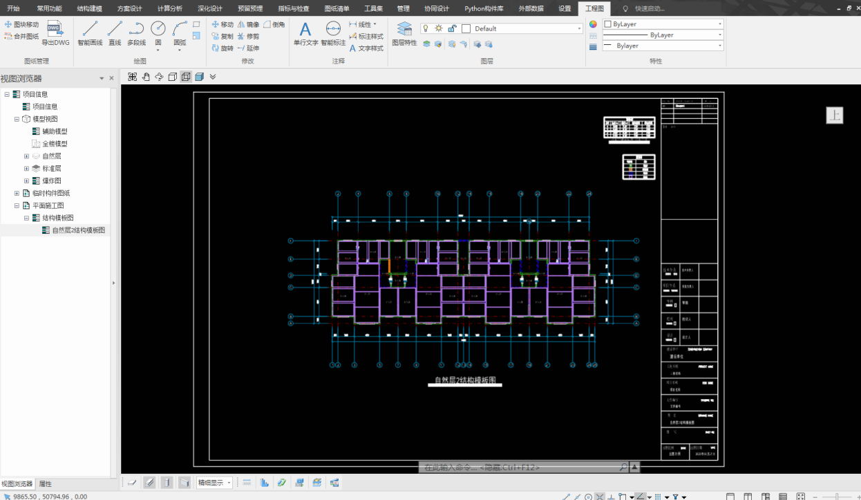 选择完需要出的图纸之后,点击右下角“生成”按钮,软件将会保存对话框中的勾选状态,退出对话框,生成对应的图纸。生成的图纸可在程序左侧项目浏览器中施工图纸栏进行查看,如图所示。